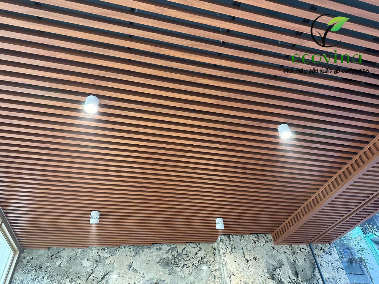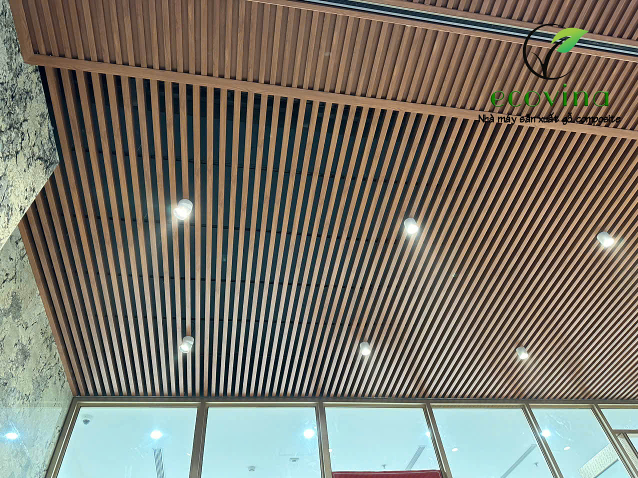 Ốp trần chịu nước gỗ nhựa  trong khách sạn, nhà hàng