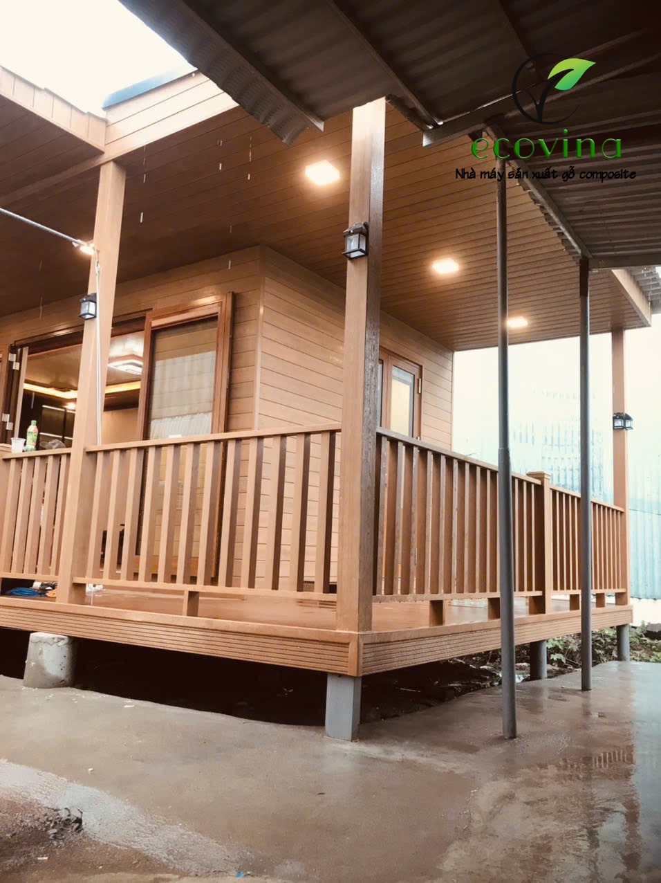 - Cột chống đỡ: Bao gồm cột trang trí, hàng rào và lan can, được làm từ nhựa gỗ đặc.