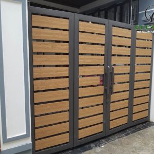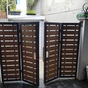 Cổng gỗ nhựa ngoài trời là cổng nhà, cổng biệt thự có sử dụng khung xương sắt và thanh gỗ nhựa ngoài trời vẫn đảm bảo tính an toàn, chắc chắn của cánh cổng vừa mang lại giá trị thẩm mỹ cao, sang trọng nhưng hài hòa với môi trường tự nhiên.