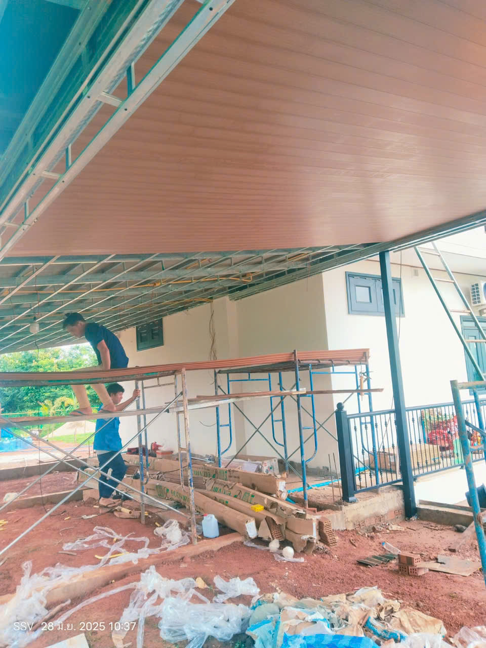 Thi công tấm ốp gỗ nhựa Ecovina tại Buôn Mê Thuột mã EW115T9 . Tấm nhựa ốp tường, trần, vách Ecovina là tấm ốp có tỷ lệ thành phần chính chủ yếu là từ hạt nhựa (nhựa PVC – Polyvinylclorua, nhựa PS – Polystyrene), là bột đá và các chất phụ gia. Sản phẩm chuyên dùng để ốp tường, ốp trần cho các không gian nội thất cho các công trình dân dụng đến các công trình thương mại.