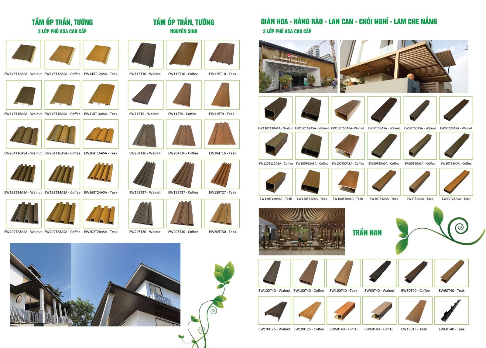 Các dòng tấm ốp gỗ nhựa ngoài trời công nghệ mới phủ Asa, ép đùn 2 lớp